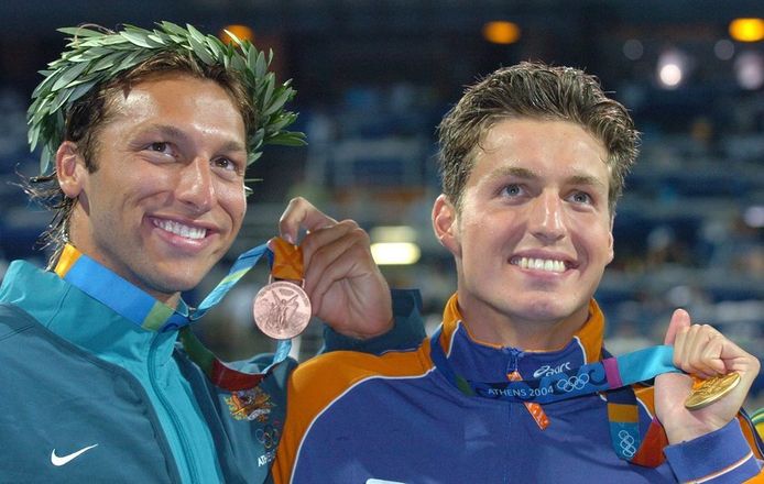 Ian Thorpe (links) naast Pieter van den Hoogenband (rechts).